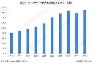 近年来,由于女性受教育水平的不断提升、就业情况的显著改善,生活质量的提高让女性消费欲望和需求不断壮大。2007年,教育部把“她经济”纳入汉语新词。女性的自我意识和自我价值逐渐崛起,“为自己花钱”、“生活仪式感”等促使“她”经济日益蓬勃发展。自2012年以来,中国内衣消费需求量不断增长,2019年达到167.7亿件;2020年受疫情影响有所下降;经初步统计,2021年疫情稳定后,我国内衣消费需求量将反弹至169.3亿件。