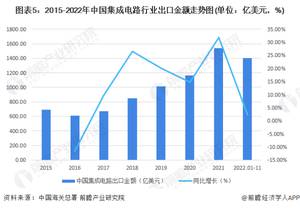 从出口金额来看,2015-2021年我国集成电路行业出口金额基本呈现扩大趋势。2021年,中国集成电路出口总额为1537.90亿美元,同比增长31.89%。2022年前11个月,出口金额达到1402.63亿美元,出口金额同比略有上涨,出口单价也有所提高。