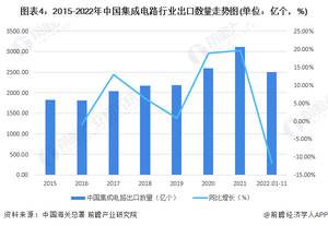2015-2021年,中国集成电路出口规模整体呈现逐步上涨趋势,2021年出口规模达到3107亿个,同比增长19.59%。2022年前11个月,中国集成电路出口规模为2505亿个,出口数量同比下降11.70%。