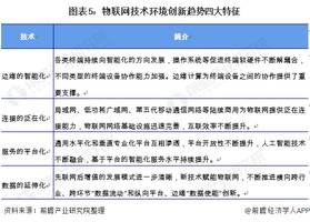 区块链、边缘计算、人工智能等新技术题材不断注入物联网,为物联网带来新的创新活力。受技术和产业成熟度的综合驱动,物联网呈现“边缘的智能化、连接的泛在化、服务的平台化、数据的延伸化”等特点。