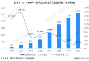 据国家能源局统计数据显示,2013年以来,我国光伏发电量增长迅速。2013年,全国光伏发电量仅为91亿千瓦时,到2019年,全国光伏发电量2238亿千瓦时,同比增长26.08%。截止2020年底,全国光伏发电量为2605亿千瓦时,同比增长16.4%。
