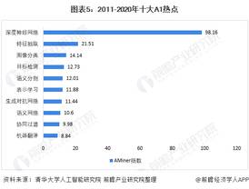 根据清华大学人工智能研究院、与中国工程院知识智能联合研究中心联合发布的《人工智能发展报告2011-2020》,2011-2020年十大AI研究热点分别为深度神经网络、特征抽取、图像分类、目标检测、语义分割、表示学习、生成对抗网络、语义网络、协同过滤和机器翻译。