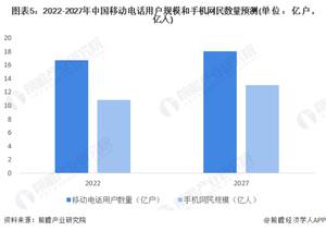 预计未来我国移动电话用户规模仍将持续缓步增长,而伴随着移动电话用户规模的增长,我国手机网民数量规模也将持续增长。预计2027年我国移动电话用户规模和手机网民数量将分别达到18亿户和13亿人左右。