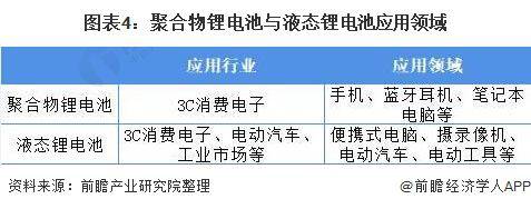 聚合物锂电池具有薄形化特征,从而可以配合产品需求。聚合物锂离子电池主要应用于手机、蓝牙耳机、笔记本电脑等。随着其技术的不断成熟,价格不断下降,聚合物锂离子电池的潜在应用领域包括电动汽车、小型电台及对讲机、电动自行车、军事领域等。