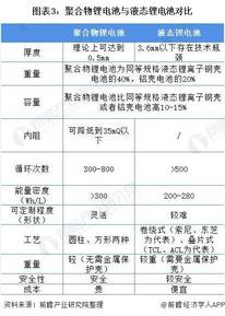聚合物锂电池的厚度理论上可达到0.5mm,符合手机对电池厚度在4mm及以下的要求;聚合物锂电池与液态锂电池相比,在同等容量下重量更轻,在同等尺寸下容量更高;聚合物电芯的内阻可达35mΩ以下,极大地减低了电池的自耗电。