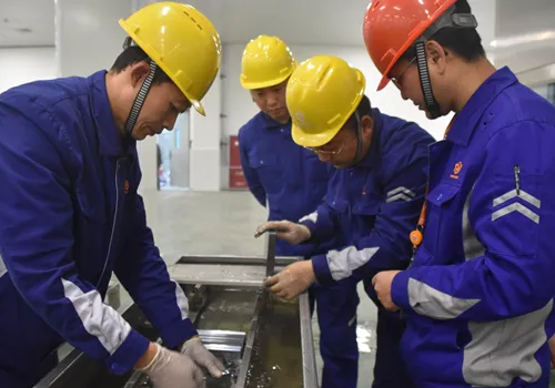 硅材料经过洗涤、筛选和干燥后,根据所用还原剂的类型,按不同比例进行配比,每种材料的比例由计算机程序控制,从料仓收集到皮带上,通过进料过程均匀混合,然后进入电炉;自动化程度高、规模大的喂料过程是连续的。精炼过程需要搅拌,采用压缩空气搅拌。其目的是改善渣-金属元素相反应的动力学条件,加速结渣,尽快去除杂质,减少热损失和硅液粘附。