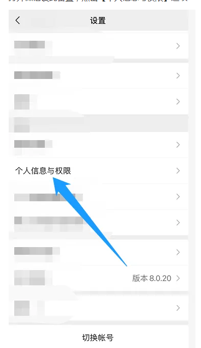 第一步,打开微信设此番置,点击【个人信息与权限】选项。(如下图所示)