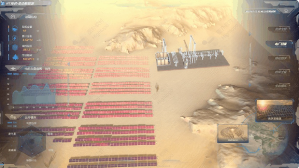 实现大型室外光伏发电时运作状态实时监测,电站负荷情况、设备管控等信息的互联互通。数字孪生不同环境场景下的光伏电站。减少室外光伏发电站运维管控的人为操作成本与危害,实现无人值守的室外光伏电站新形势。