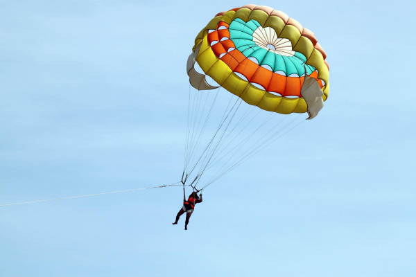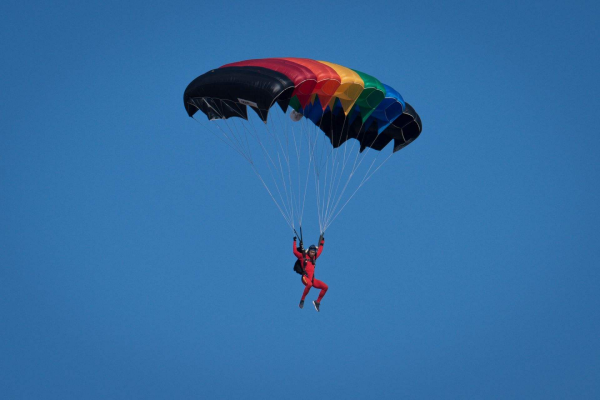 降落伞具有比较大的伞面,有主伞和备用伞,结构包括伞衣、伞绳、降落伞背带、开伞装置和伞包等。当人遇到紧急情况需要开伞的时候,首先要及时拉拽降落伞上面的开伞装置绳,使得降落伞迅速开散,然后再逐渐控制好降落伞的方向,这样人的速度就会在下降过程中逐渐慢下来,最终平安落地。