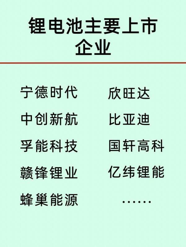 宁德时代 欣旺达 中创新航 比亚迪 孚能科技 国轩高科 赣锋锂业 亿纬锂能 蜂巢能源。