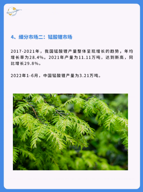 2022年1-6月,中国锰酸锂产量为3.21万吨。