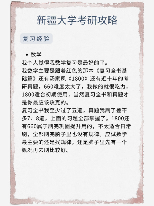 复习全书我至少过了五遍,真题我刷了差不多7、8遍,上面的习题全部掌握了。1800还有660属于刷完巩固提升用的,不太适合日常刷,全部刷完脑子里也没有规律。应试数学最主要的还是找规律,还是脑子里先有一个概况再去刷比较好。