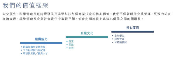 核心价值:安全优先、科学管理及可持续发展。