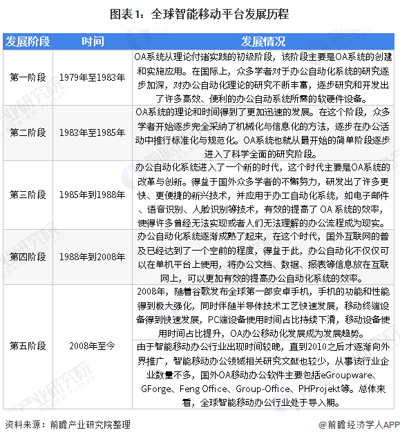 OA办公向智能化移动办公的发展共经历五个阶段: