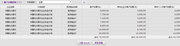您可查询到企业年金的账户余额及企业账户余额和个人账户余额。