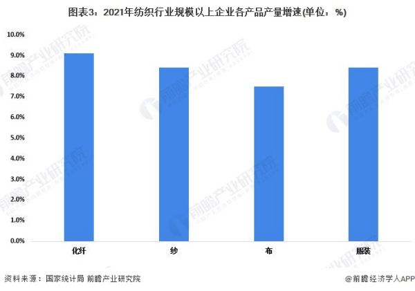 在生产方面,2021年规模以上纺织企业工业增加值同比增长4.4%,较2020年提高7个百分点。