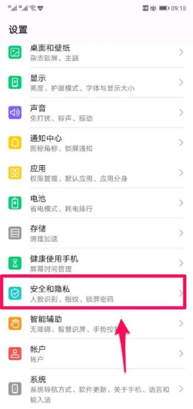 2、然后在手机的设置里面找到安全和隐私,并点击进入。
