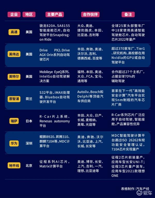 纵观中国市场上主控芯片的量产装车情况,量产环节的主导力量仍是英伟达、高通、Intel这些外企。
