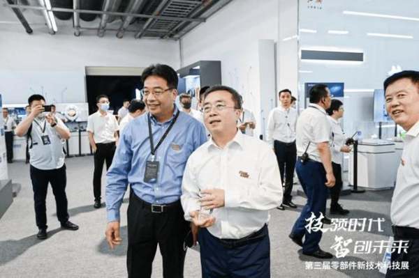 一汽集团董事、党委副书记王国强(右)参观黑芝麻智能展区