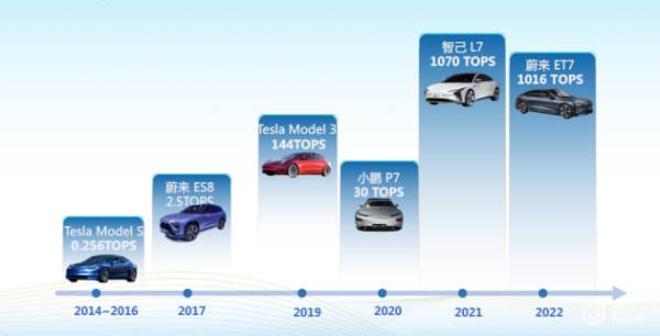国内市场量产车型芯片算力逐年递增