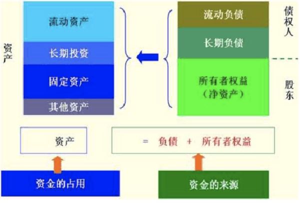 就报表基本组成而言,资产负债表主要包含了报表左边算式的资产部分,与右边算式的负债与股东权益部分。