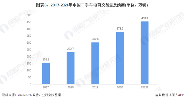 互联网+二手车市场交易情况:2021年或达到450万辆以上