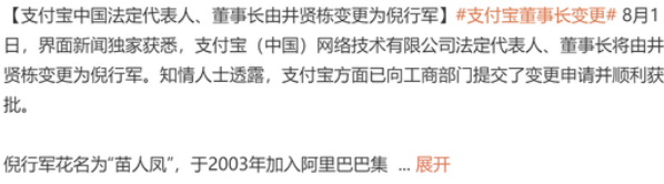倪行军接替井贤栋任支付宝法人、董事长,此次变更将对企业带来哪些影响?