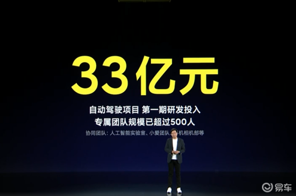 雷军表示,小米造车自动驾驶项目第一期研发投入33亿元,专属团队规模已超过500人。目前第一期规划140辆测试车将陆续在全国进行测试。现场大屏幕还公布了小米汽车自动驾驶测试车辆的测试视频。