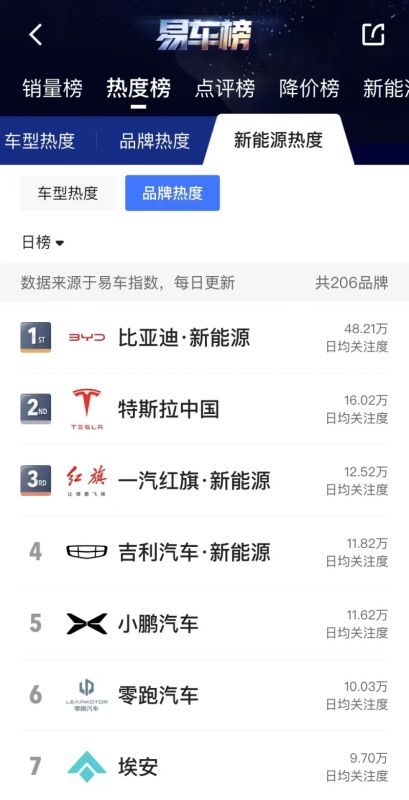 易车App提供销量、热度、点评、降价、新能源、保值率、实测、安全、零整比、保有量、经销商、易车号榜单。如需更多数据,请到易车App查看。