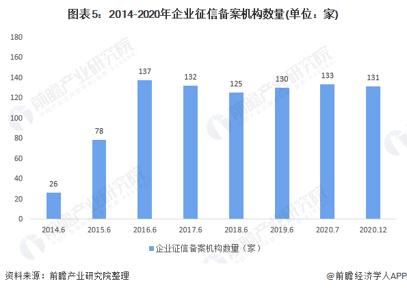 近年4年,企业征信企业数量在120-130家左右波动,企业竞争度较小。在截至2020年12月末,全国共有23个省(市)的131家企业征信机构在人民银行分支行完成备案。对于目前的中国征信市场来说,互联网是眼下最强的风口力量。消费金融、共享经济、社交、电商,这些炙手可热的互联网行业都具有征信需求。强烈的需求加极少的供给,这给市场化征信机构的快速发展创造了不可多得的机会。