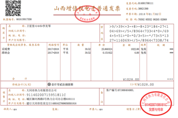 纸质发票样式: