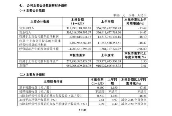 根据上汽集团公布半年报显示,公司上半年实现营业收入3050.18亿元,同比下降14.47%;归母公司净利润69.1亿元,同比下降48.1%。经营活动净现金流更是由正转负,净流出47亿元。