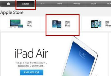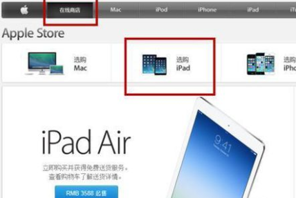 2、点击“在线商店”,这里以购买“iPad air”为例,点击“选购iPad”: