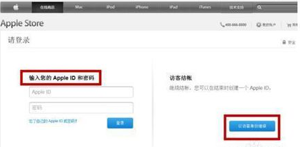 5、要求输入Apple ID,如果没有,也可以以访客的身份结账;