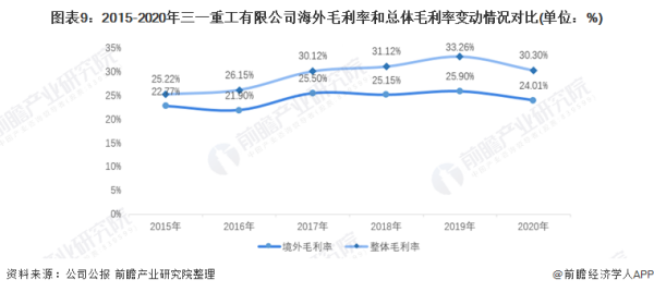 从公司公报来看,2015-2020年公司工程机械行业平均毛利率总体在30%上下浮动,海外毛利率则总体在25%上下浮动,整体来看,三一重工海外工程机械市场获利能力整体低于公司平均水平。
