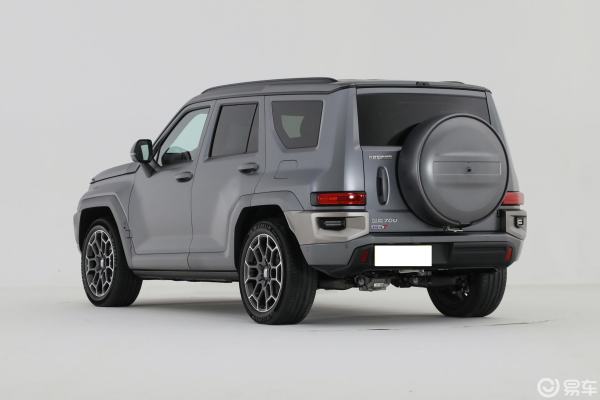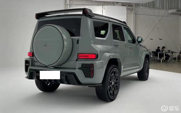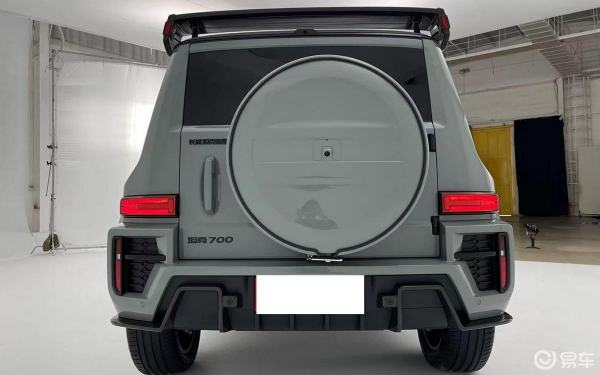 车尾部分,和坦克400车型一样,坦克700 Hi4-T也采用了上窄下宽的设计,以营造出厚重感。备胎被悬挂到了尾门中央,而尾门的开启方式则是由左向右拉伸,预计内部会配备液压撑杆,以减轻开门时的压力。往下是较为醒目的扩散器设计,对比坦克400,整体运动感也要强了许多。