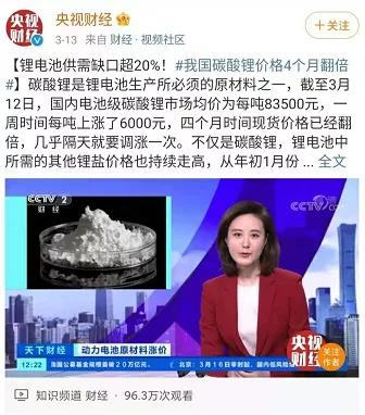 多家锂原料知名企业均表示,近期受供需关系和下游溢价能力的综合影响,原材料和加工成本的价格都进行了上涨。