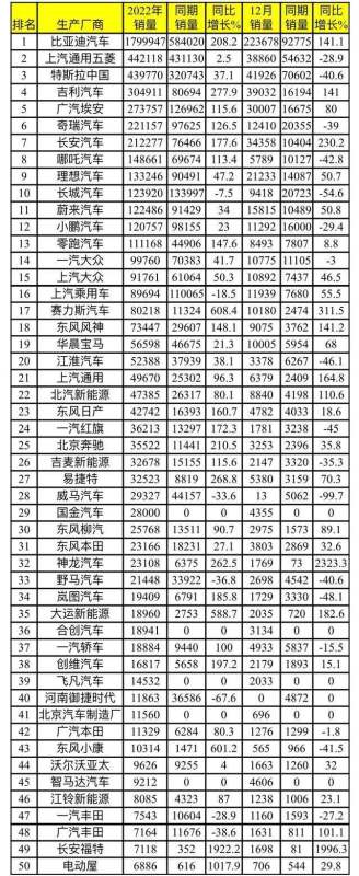 销量方面,比亚迪2022年总销量为180.25万辆,同比增加149.88%。其中乘用车销量为179.66万辆,同比增加151.83%,依然取得断层TOP1的好成绩。