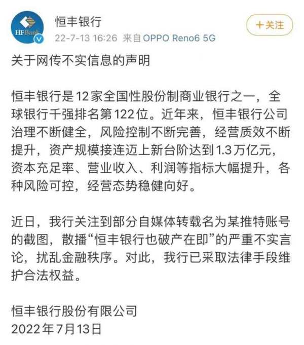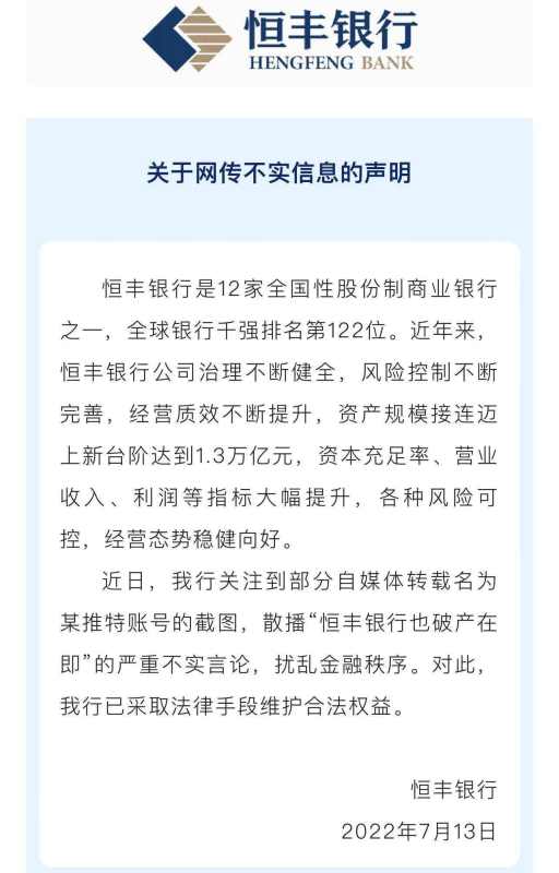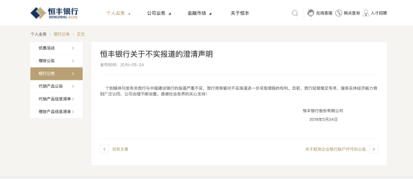 恒丰银行回应破产传闻:严重不实,此事对该银行的影响有哪些?