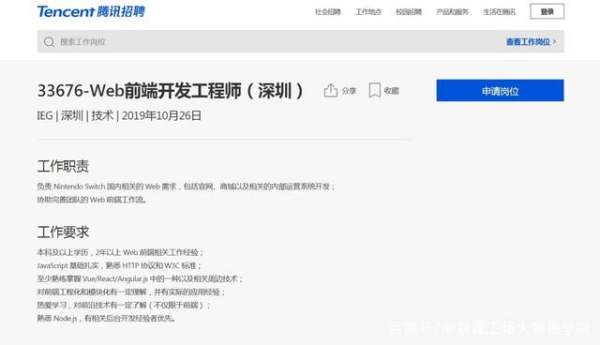 招聘要求显示,Web前端开发工程师的岗位主要负责Nintendo Switch国内相关的Web需求,包括官网、商城以及相关的内部运营系统开发。