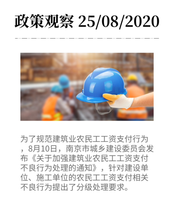 事实上,市建委刚刚于8月初完成了2020年上半年南京市建筑业施工企业的信用评价工作。但在《2020年上半年南京市建筑业施工企业信用评价统一标准》中,这三项仅分散于实名制评价的加分项中,而未体现在减分项中。可以期待随着《通知》的下发,这些不良行为未来将成为信用评价的固定项目,辅助市建委对施工企业进行信用监管。