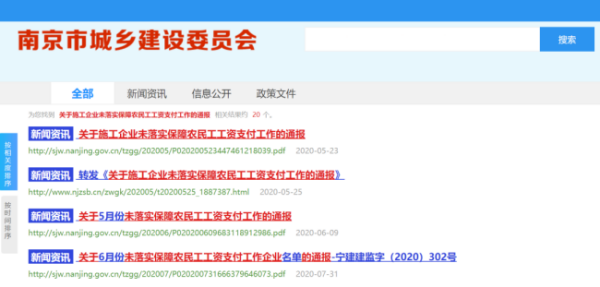 2020年5月1日《保障农民工工资支付条例》正式施行以来,南京市住建委按月对在建项目农民工工资专用账户、工资代发和现场考勤管理落实情况开展随机抽查,已分4批对未落实该条例的90个项目予以通报。