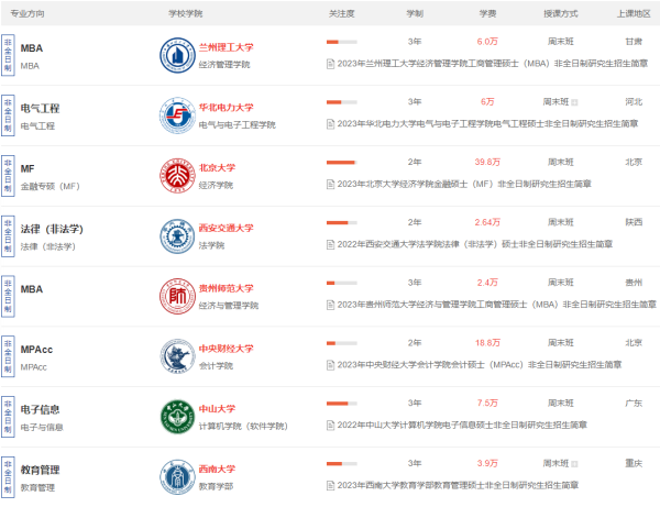 专业硕士在职研究生则要高一些,一般同样学制为2年的课程,专业硕士会在50000以上,平均一年要在20000以上。非全日制研究生需要参加全国统考,经过初试复试后方可入学。热门专业有公共管理硕士、社会工作硕士、工商管理硕士、会计硕士、法律硕士等,报考条件一般是国家承认的大学本科毕业学历的人员。
