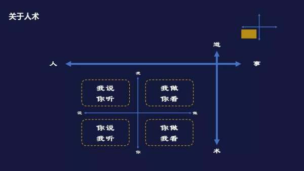 我这里讲的人术,最重要的是从说和做两个维度,即我说你听、我做你看、你说我听、你做我看。