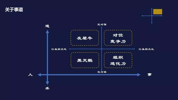 所以,当你面对灰犀牛的时候,我觉得最重要的是不要认为它不会发生,并且始终要有一支小分队在不断尝试跟灰犀牛相关的业态。