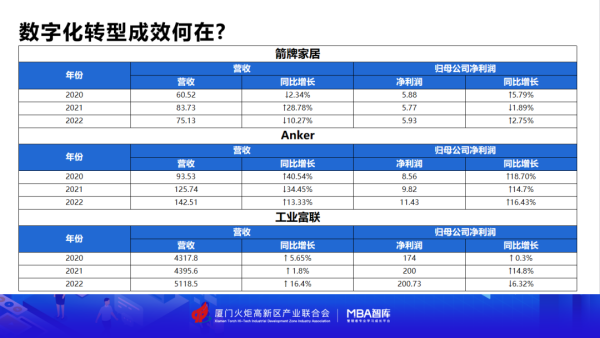 我们以三家企业为例, 下方是三家企业三年的营收增长率:我们能看出,经过数字化转型后三家企业的营收与净利润都得到了增长。