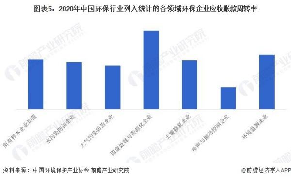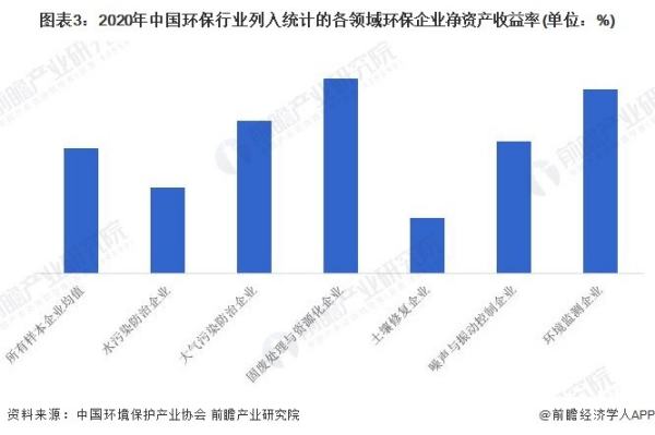 环保企业净资产收益率相对较低,相同样本企业净资产收益率同比下降。2020年,被调查的环保企业净资产收益率平均值为7.9%。具体到细分领域,除水污染防治、土壤修复领域企业的净资产收益率低于该平均值外,大气污染防治、固体废物处理处置与资源化、噪声与振动控制、环境监测领域企业的净资产收益率均高于该平均值。