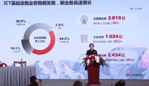 2021年华为企业业务实现销售收入1024亿元,同比增长超2.09%。运营商业务实现销售收入2815亿元,已经成为华为最大的收入来源,其中海外收入占比超过50%,但相比2020年的3026亿元的收入,今年的运营商收入下降明显。