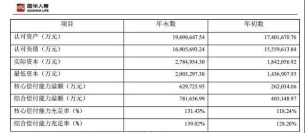 2018年国华人寿的综合偿付能力充足率是128.2%,而到了2019年达到了139.02%。偿付能力满足保监会规定的标准。
