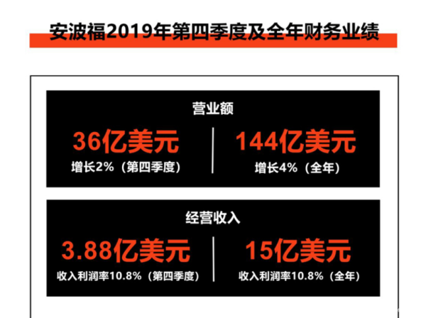 安波福方面,报告显示,通用的罢工给其第四季度、全年分别带来了约1.3亿美元、2亿美元的不利影响,导致其在2019年第四季度营业额下滑1.1%,至36亿美元,经营收入下滑9.8%,至3.88亿美元,收入利润率10.8%;全年营业额同比下滑0.5%,至143.6亿美元,经营收入则下滑11.6%,达15亿美元,收入利润率10.8%。不过得益于其在软件功能、计算机平台以及网络架构方面的强劲实力,安波福在过去一年中交付新业务订单超过220亿美元,从而给未来可持续、健康的发展提供强劲实力。